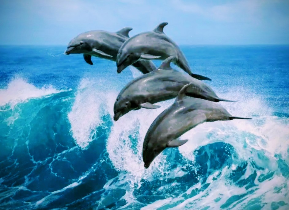 Четвёрка дельфинов, как птица летает!