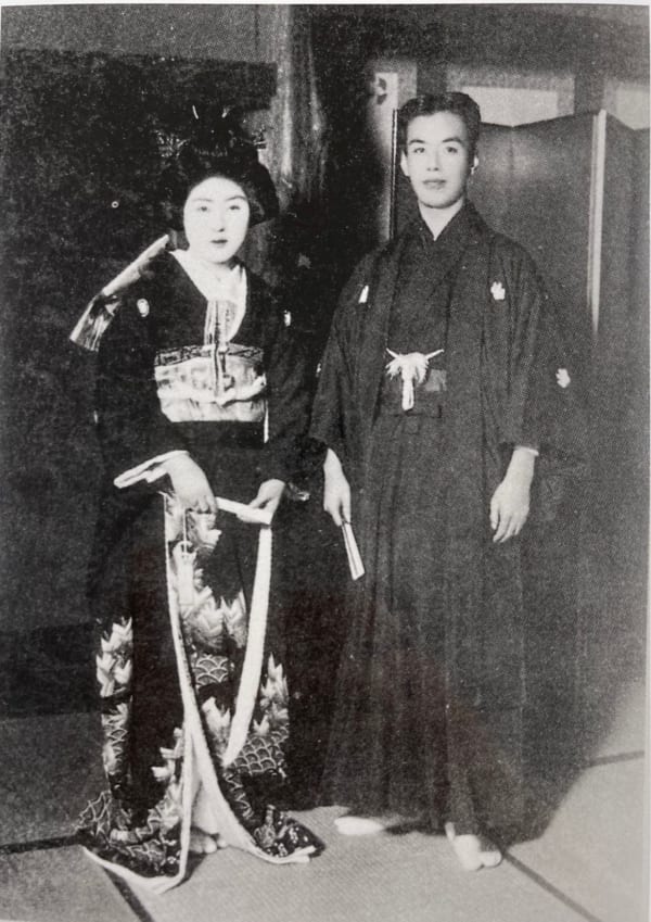 На фотографии: с женой - Акутагава (Цукамото) Фумико в 1918 году (7 год Тайсё)