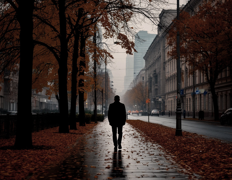 Бродят тени в осеннего города адовости.