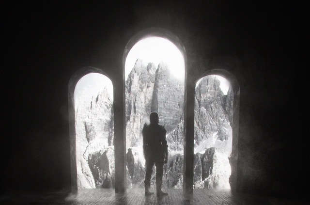 Вороны кружат у снежных вершин.