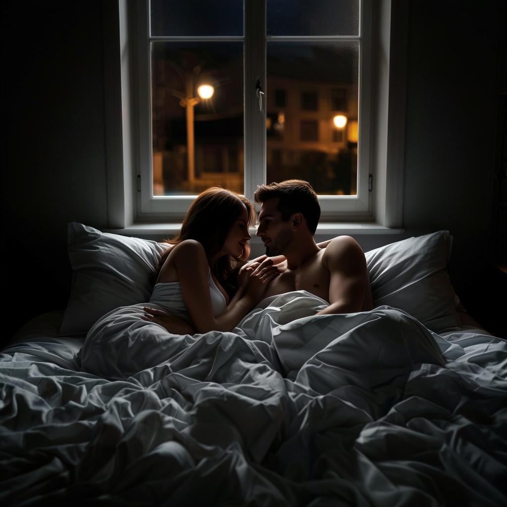 На измятых льняных простынях