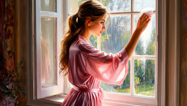 Мама очень долго моет раму,