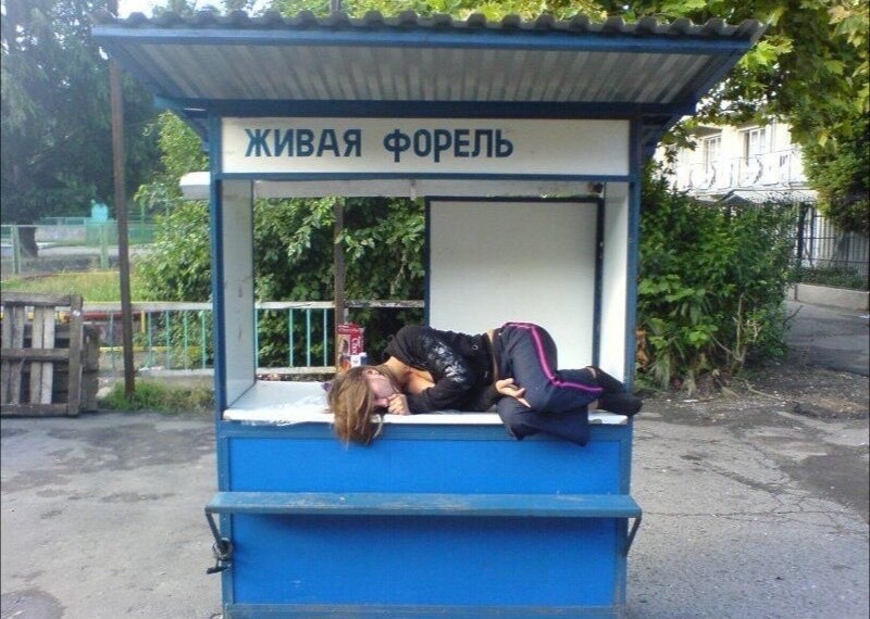 Стал прилавок с крышей для тебя постелькой,