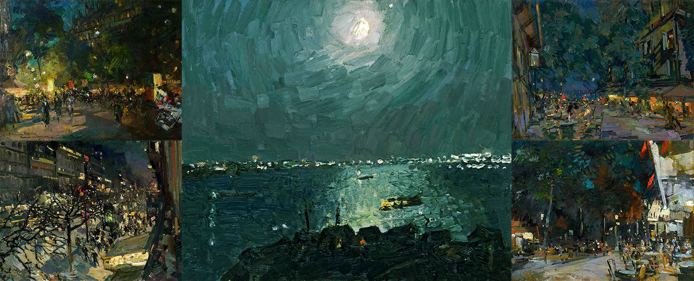 Представлены полотна Константина Коровина ( 4 работы ); по середине Владимира Овчинникова («Лунная ночь на Волге»).