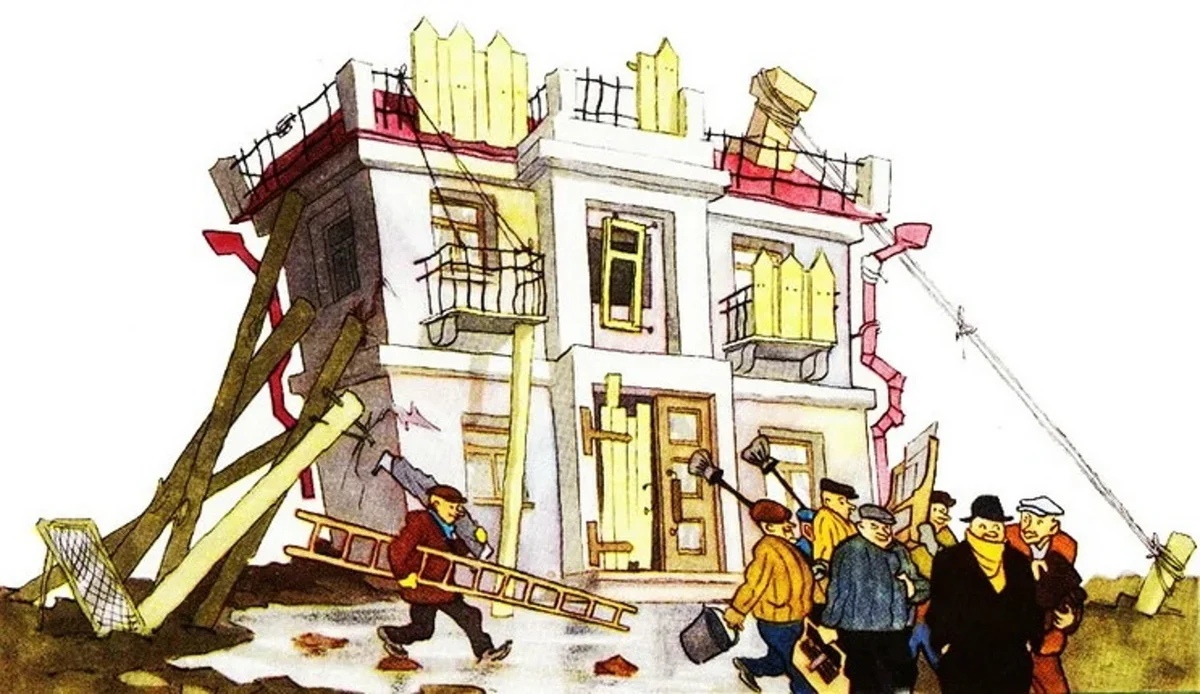 - При ремонте дом совсем перекосило!