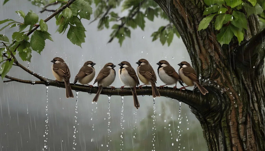 Воробьи совсем притихли