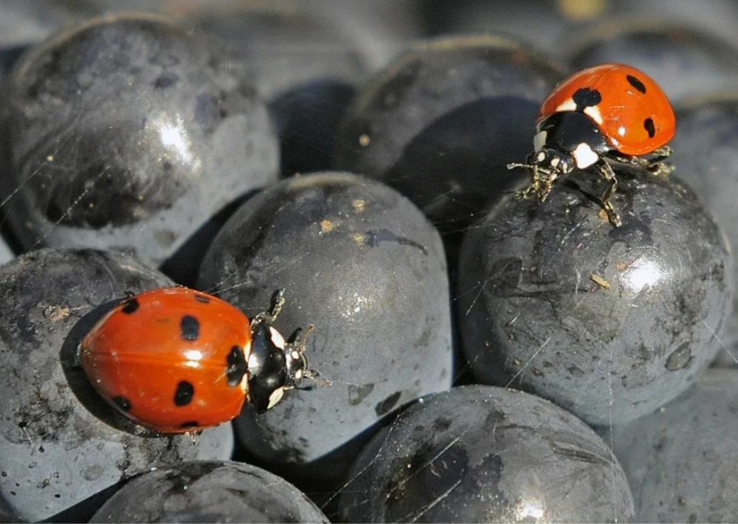 Божьи коровки живут в винограде