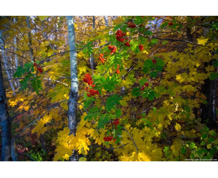 На плечах дрожащих у рябины.
