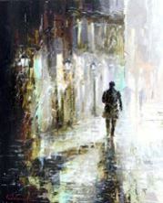 Вечер, мокрый снег, серая улица.
