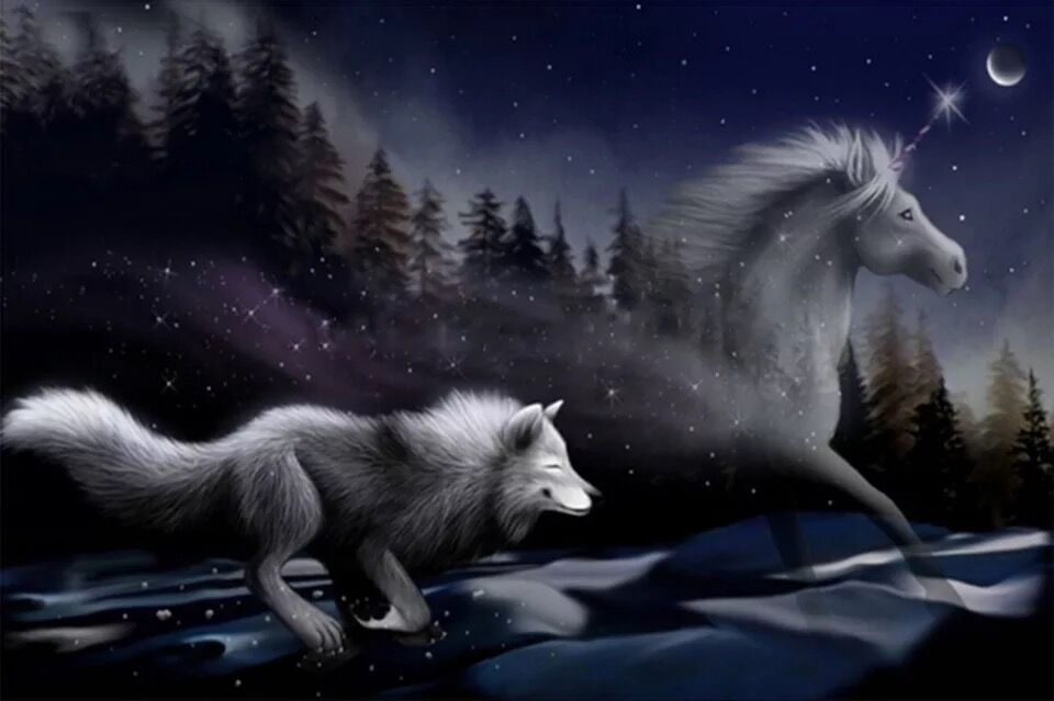 Лошадь и волки - персонажи, рождённые воображением старика.