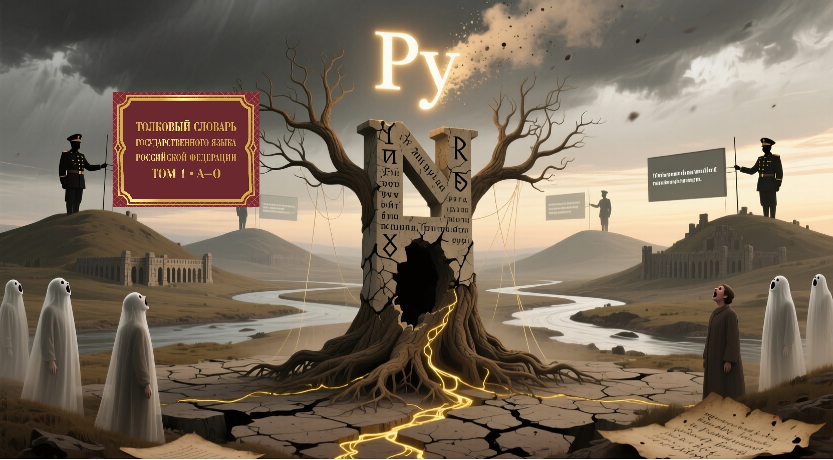 Слово Ру будут сливать из заголовков, как сливают нечистоты. Сначала тихо, по ночам. Потом — открыто, при всём народе. Слово Ру — корень, державший небо. Его извлекут, как больной зуб. И когда его не станет, небо рухнет, но никто не заметит, ибо слова чтобы описать это падение — уже не будет.