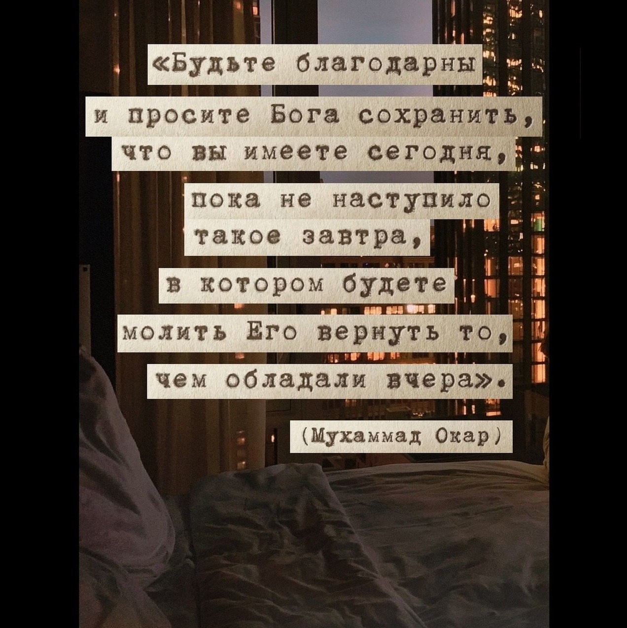 «Будьте благодарны и просите Бога сохранить, что вы имеете сегодня, пока не наступило такое завтра, в котором будете молить Его вернуть то, чем обладали вчера».
